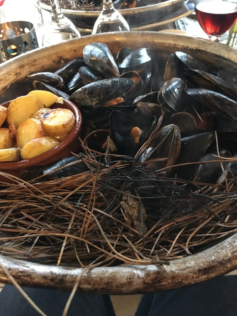 Eating: Can’t be by the coast in France without some mussels. Malaise strikes here too as the previously ubiquitous moules marinières are not to be found. We had the above instead, in a restaurant in La Ciotat, La tête d’ail, and it is their speciality. Moules à l’éclade, pommes de terre sautées – mussels cooked and smoked with pine needles – delicious for a night that wasn’t as warm as it should have been!