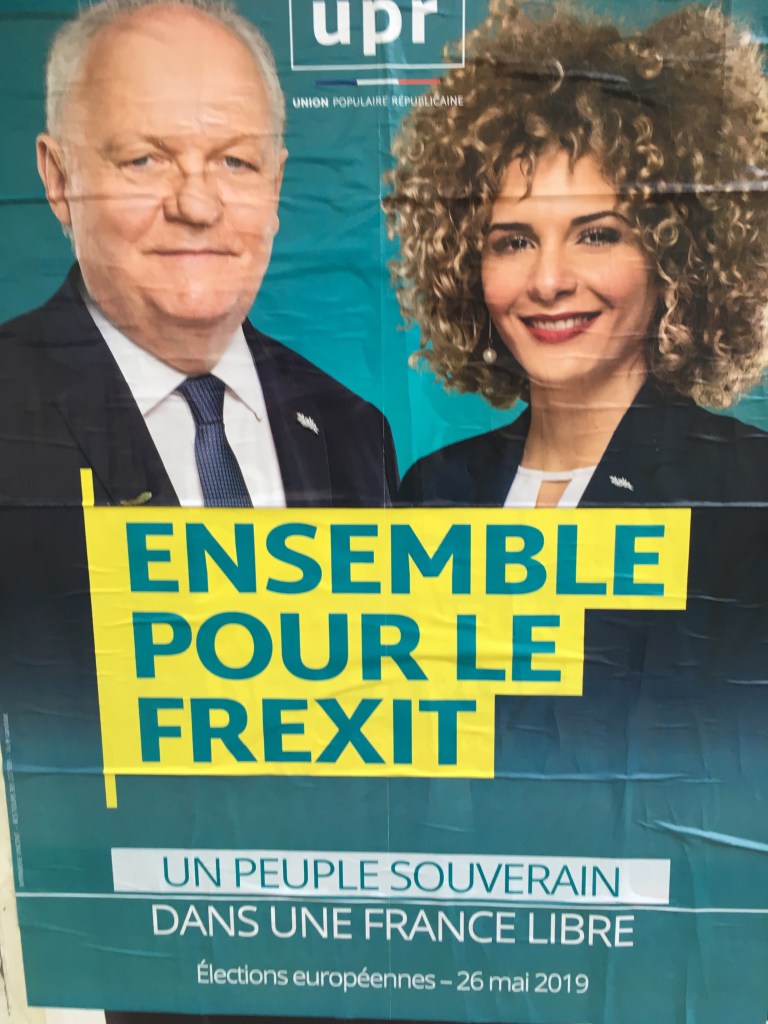 Braving the stiff breeze back at our local Sunday market, it was interesting to see pamphleteers from a range of political parties out in force prior to the vote this coming week. The major political parties were all represented. Being the south, there was a disproportionate ‘Le Pen’ presence and several party enthusiasts pushing ‘Frexit’ (for which there are posters splashed all over the area). There was much heated debate, a certain amount of ignorance and many leaflets on the floor by the end of the day.