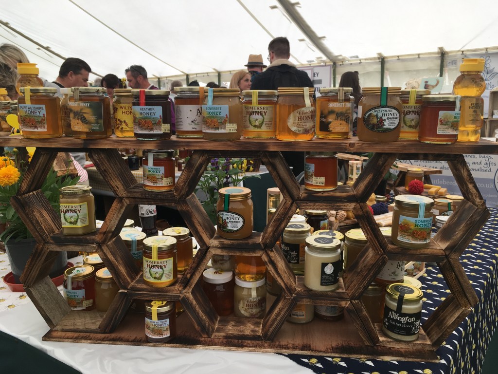 Hoping to find additional inspiration, we have visited our first major country show – the Bath and West. What a joy! Loved the food and drink tent, (though tasting so many different gins before 10.30 might have been a mistake) replete with local producers of everything from sausage rolls, flapjacks and cider to garlic, scotch eggs, chillies and anchovies. Loved the array of stands selling anything from firepits and jacuzzis to toys, essential ‘country’ wear and tractors. Loved the (mainly horsey) events – pony carriage driving a particular favourite. Honey tasting, engineering stands, kids sitting on forklifts – a bit of everything. I came away with a real sense that, as much as anything else, the show served a ‘public information’ service, informing and educating attendees, ensuring that key issues and traditions are alive in the minds of the next generation. As a former teacher, I doff my tweed flat cap to all concerned.