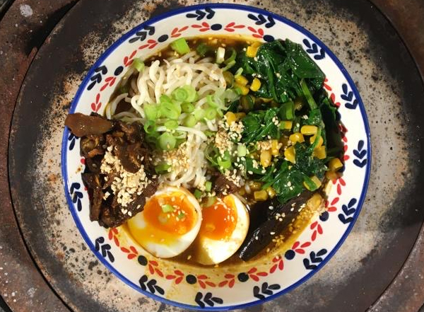 Eating: For some time child #2 has been badgering me to have a go at ramen, so made this Kotteri veggie ramen, recipe taken from: Ramen by Tove Nilsson. It does take some time but is well worth it… a great way to spend a Saturday if you are happy to ‘play’ in the kitchen. I ran out of time so didn’t make the noodles this time – a future plan! The spicy chilli oil was spectacular and I was pleasantly surprised by the pickled eggs. I added a few fresh mushrooms to the topping as well.