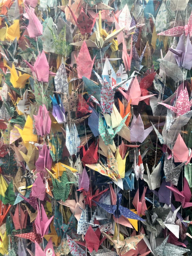 I cannot leave without referring to our day trip to Hiroshima, which, despite the Peace museum being closed, due to anti Covi-19 control measures in place, still possesses an aura and a power to teach us all of the past and remind us of a ‘better’ future. Out of great suffering and destruction has grown a vibrant and modern city which has embraced its past, ‘owned’ it almost and is determinedly forward looking, a sense not dissimilar to that you get when you visit places such as Berlin. The crane has become a symbol of peace and hope and one of the most moving parts of Hiroshima is the place where paper cranes, made by school children in Japan are displayed…