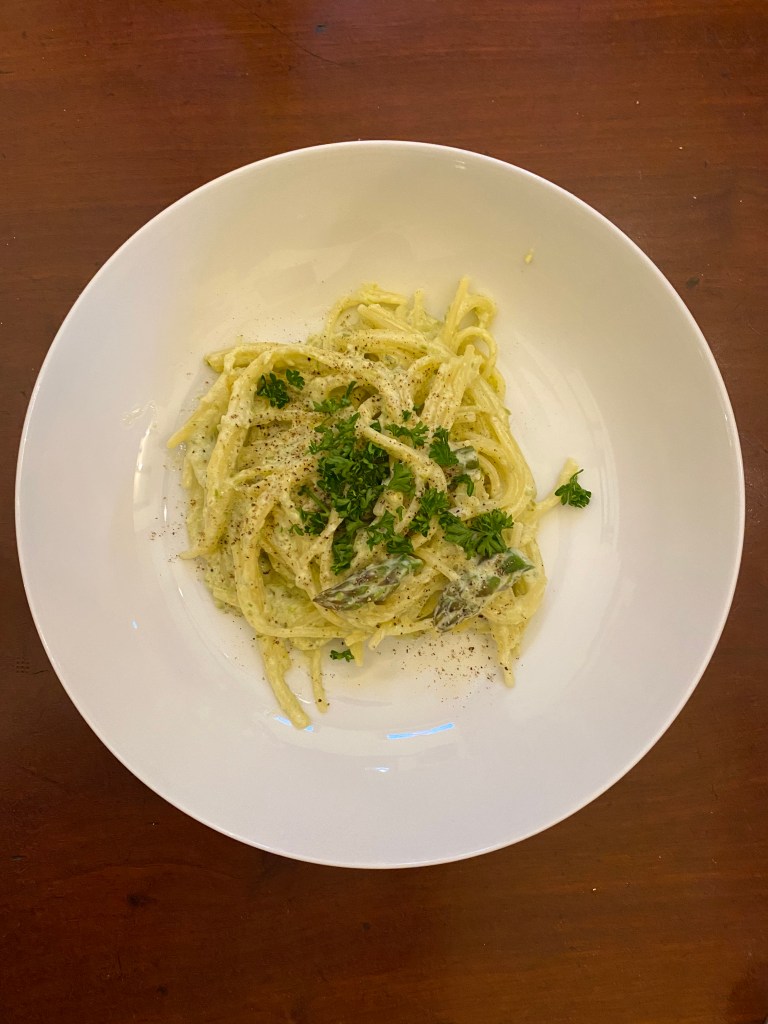 Eating: Child #3 loves pasta, so during the week pre and post birthday we had many dishes. Pictured above Asparagus cream pasta, recipe from bbcgoodfood.com I made it child #3 friendly, by using gluten free pasta, garlic infused oil, vegan cheese and Alpro single soya cream.